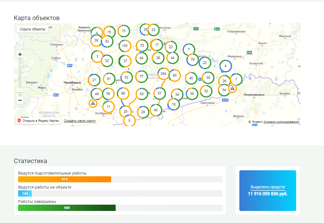 Проект реализован для Правительства Курганской области и объединяет данные по всем муниципальным образованиям региона в единое информационное пространство.