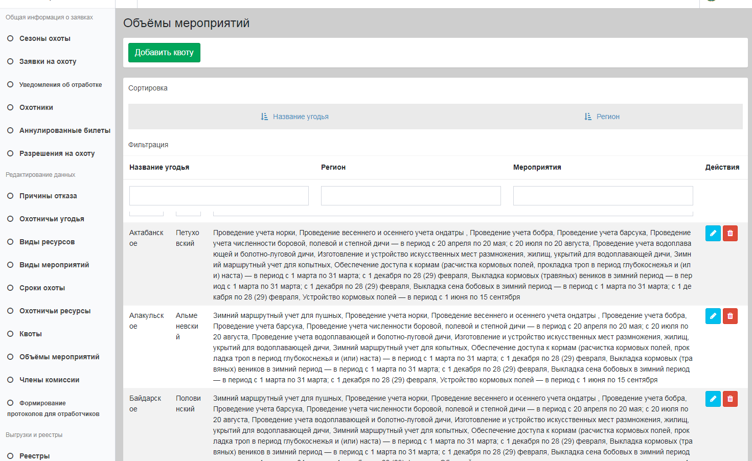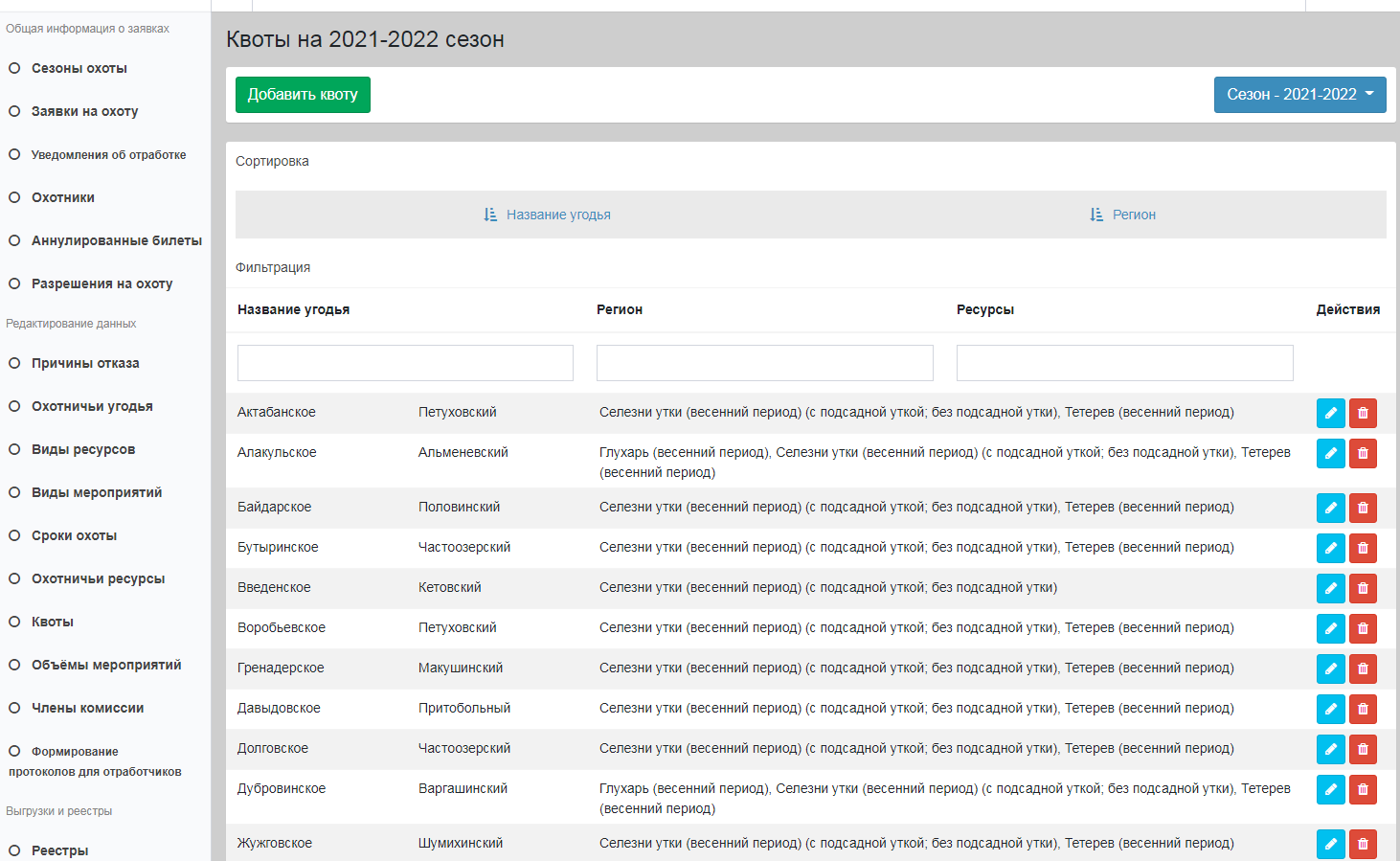 Все выданные разрешения фиксируются в электронном реестре с возможностью поиска и верификации. Данные хранятся за все сезоны, что позволяет формировать аналитику по объёмам добычи и динамике заявок.
