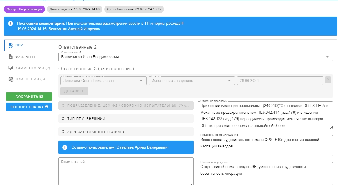 - Разработка терминалов обратной связи для цехов и производственных участков