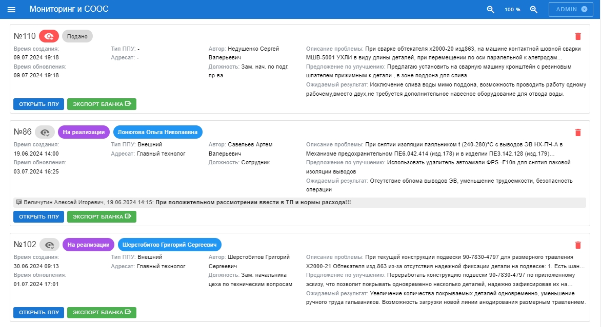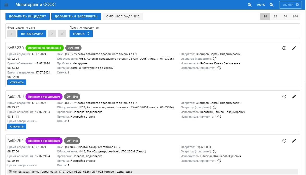 Система развёрнута на нескольких крупнейших предприятиях Курганской области и ежедневно обрабатывает тысячи событий — от сигналов датчиков оборудования до обращений сотрудников через терминалы обратной связи на цеховых участках.