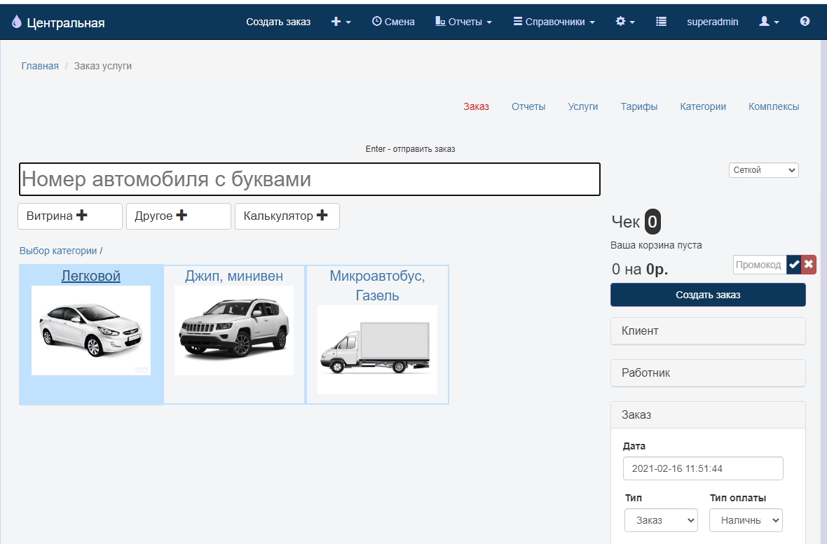 Система автоматизации рабочих мест администраторов и руководителей сети автомоечных комплексов. Программа работает и распространяется среди автомоечных комплексов с 2017 года. Ежедневно в системе работают несколько десятков администраторов и проходит несколько тысяч заказов.